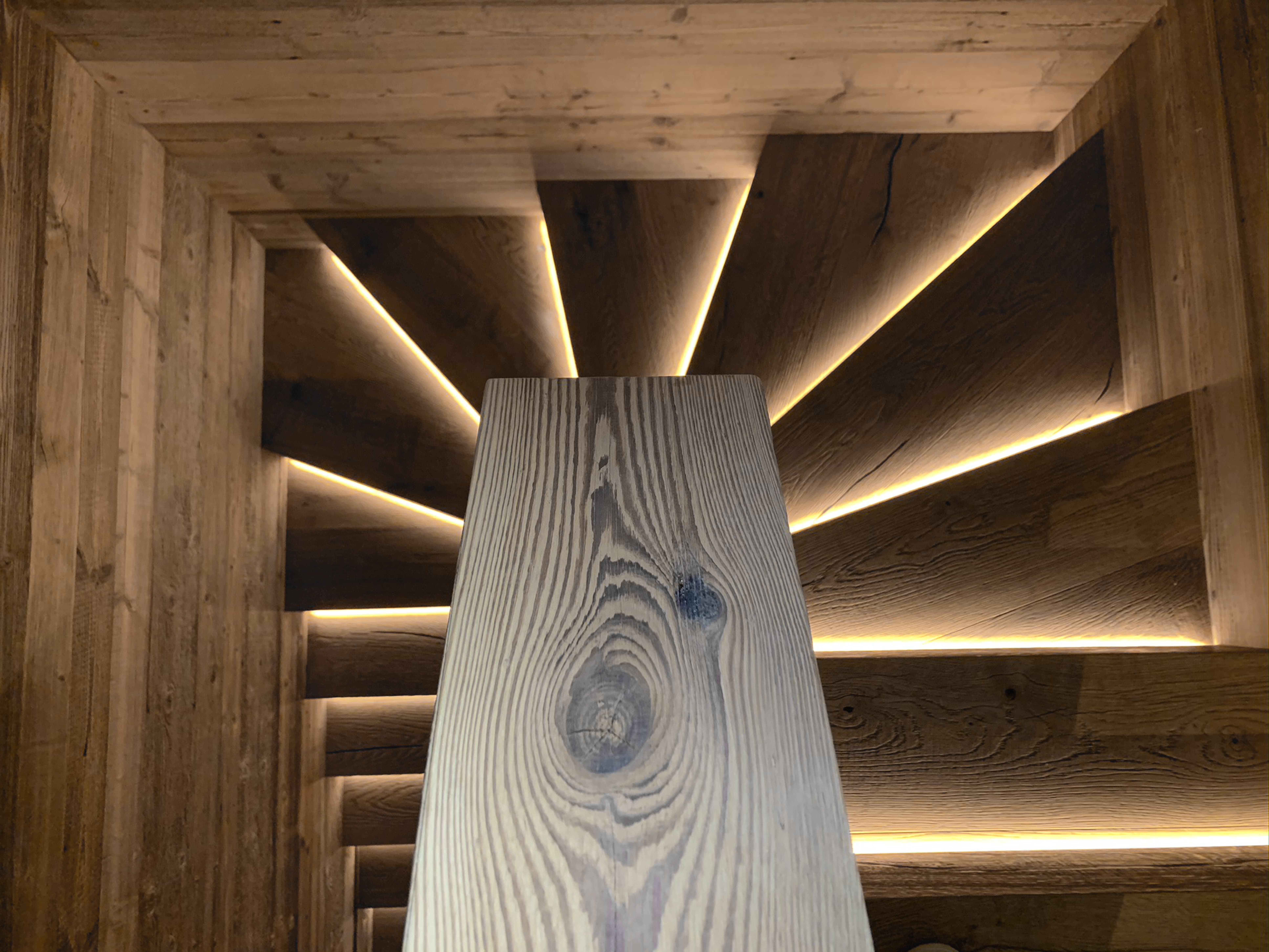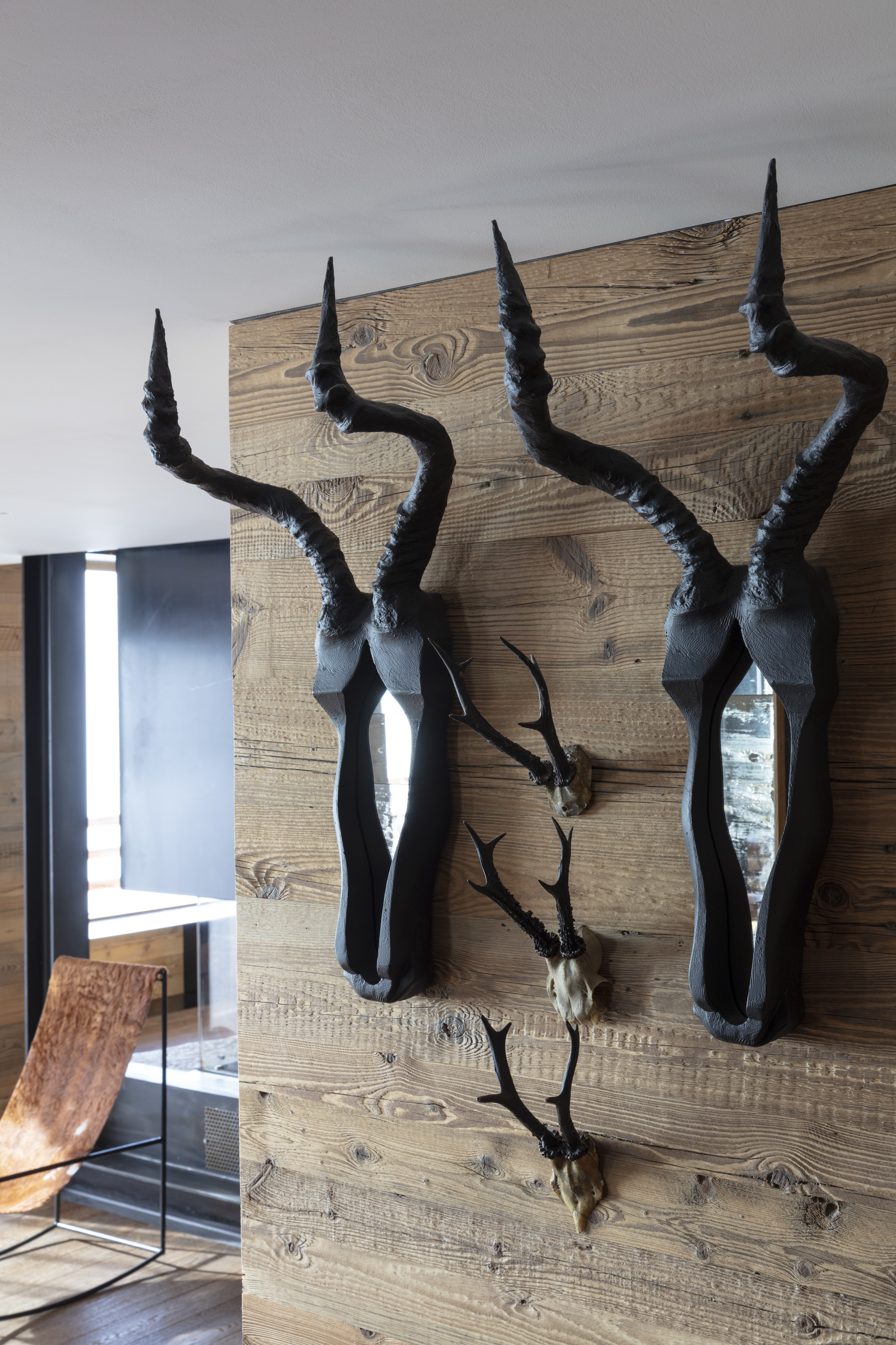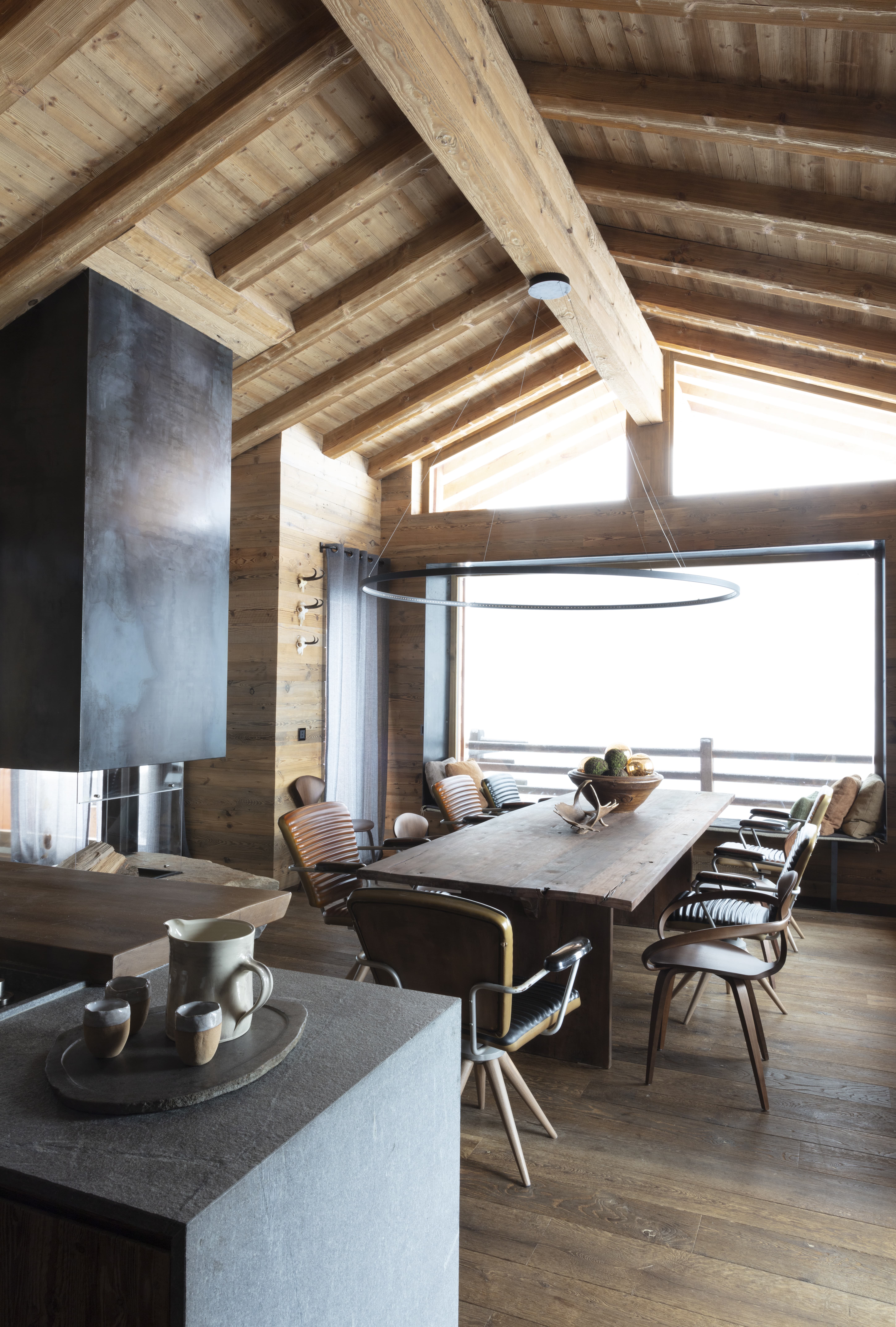 Sur le rocher, le feu, le fer, la pierre, la minéralité, comme une touche précieuse sublimée par la douceur du bois et de la laine.