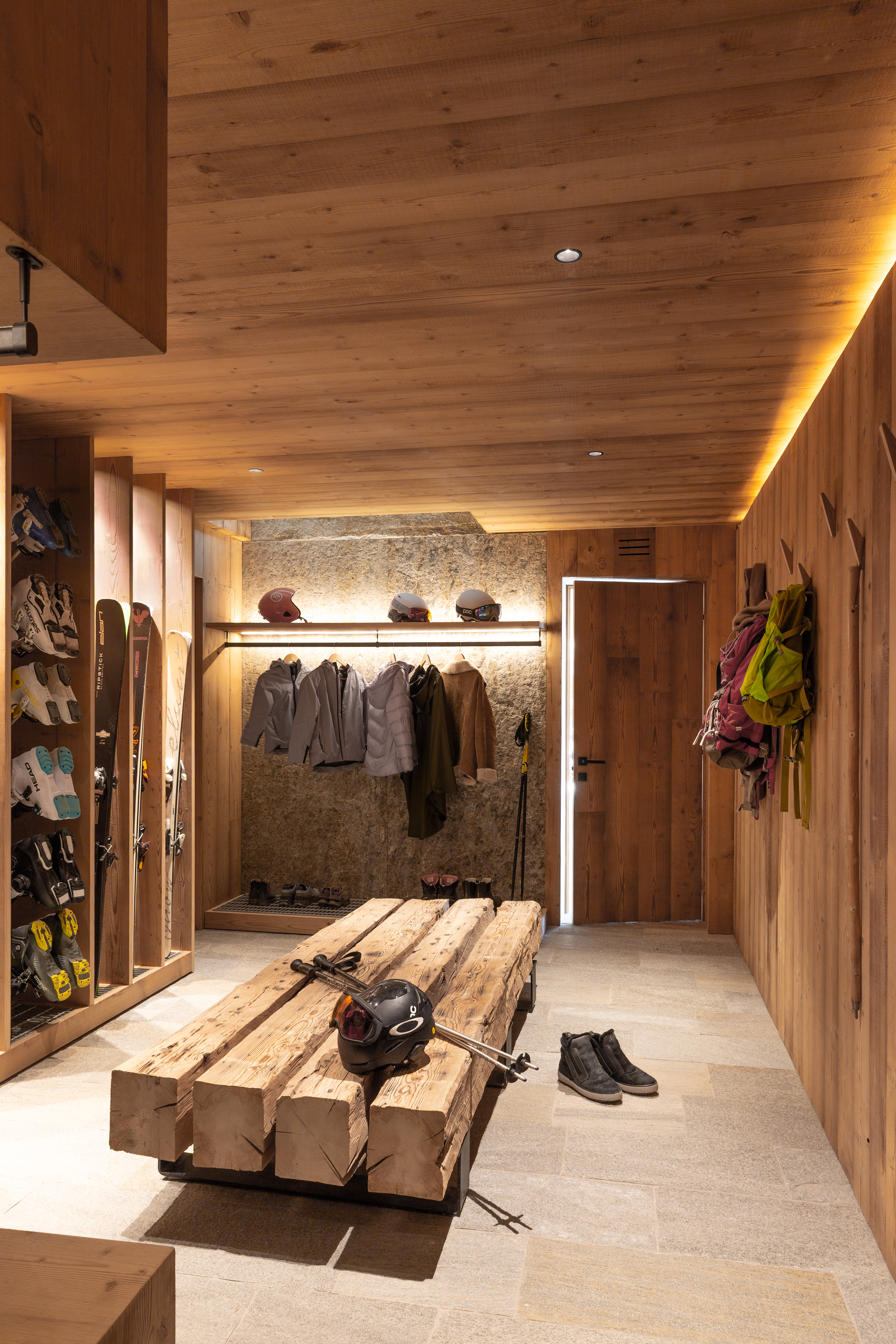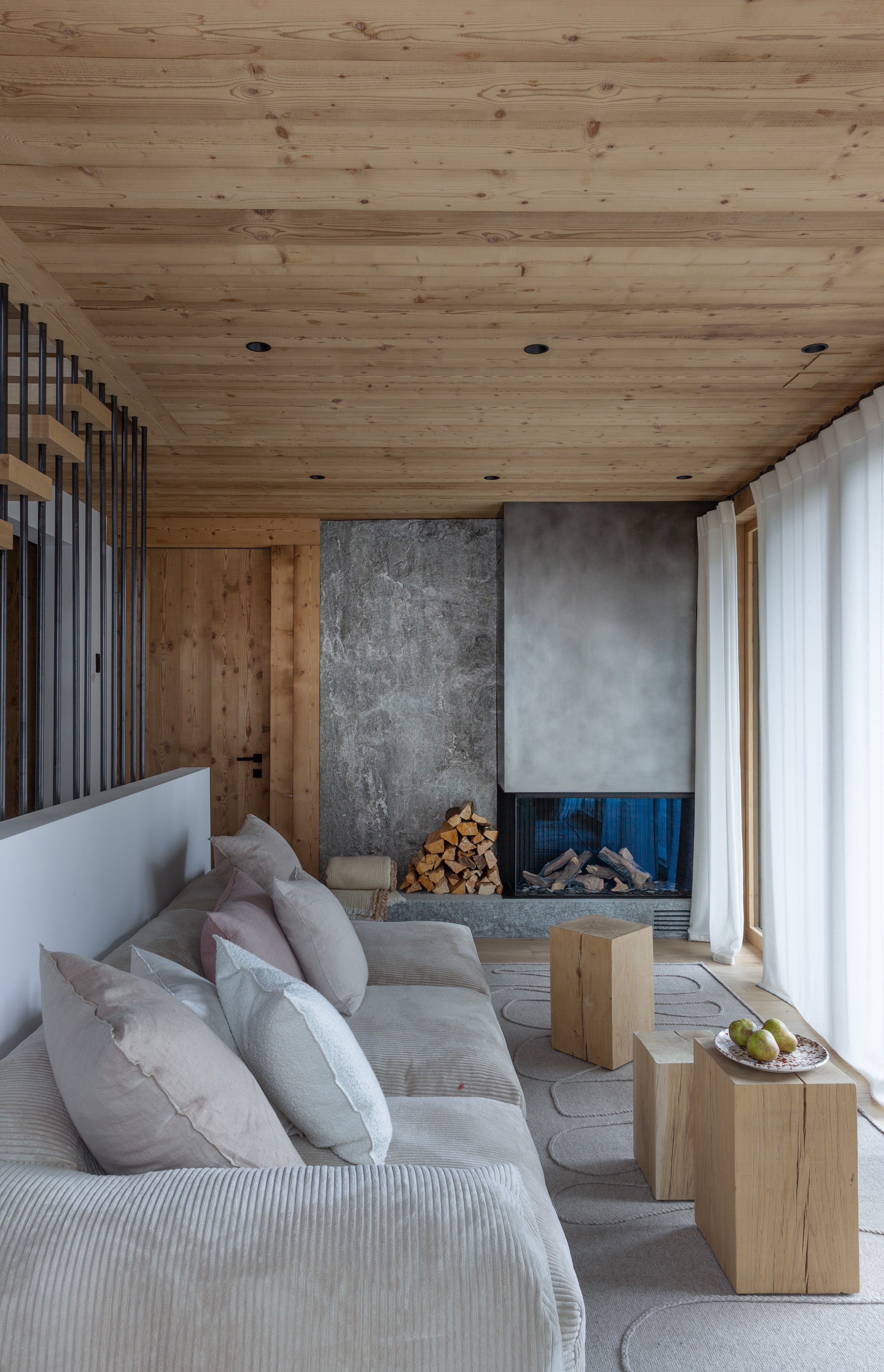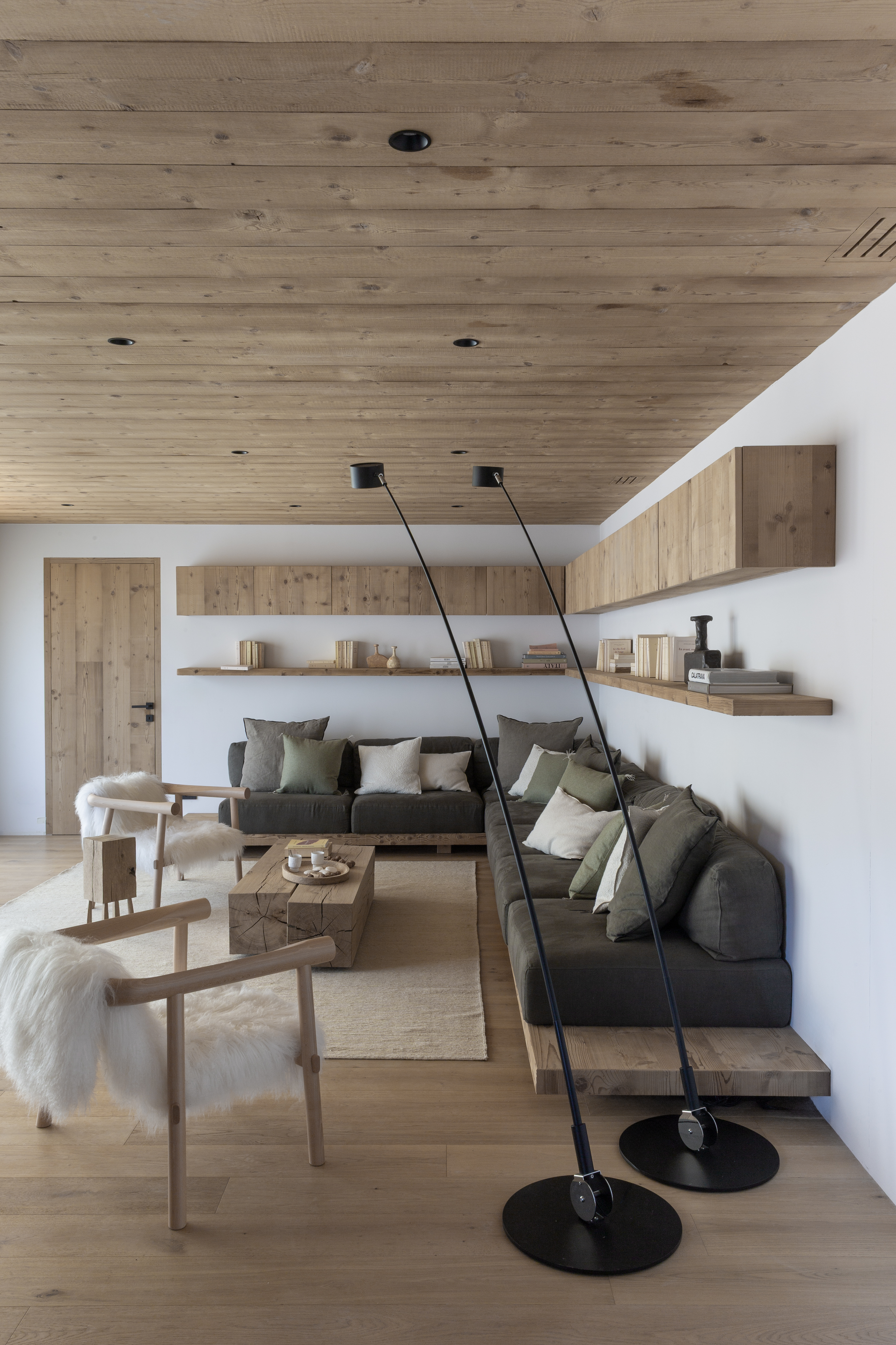 L’intérieur devait être en harmonie avec la modernité l’architectural de ce projet dans le Val d’Ayaset. Très vite le travail sur la ligne c’est imposé. Le chalet s’anime avec un jeu de lumière et s’apprête à vivre au rythme des saisons et la nature environnante. L’intérieur est épuré et doux, confortable et moderne, comme pour mieux se lover le week-end au cœur des sapins après une semaine urbaine au tempo démultiplié.